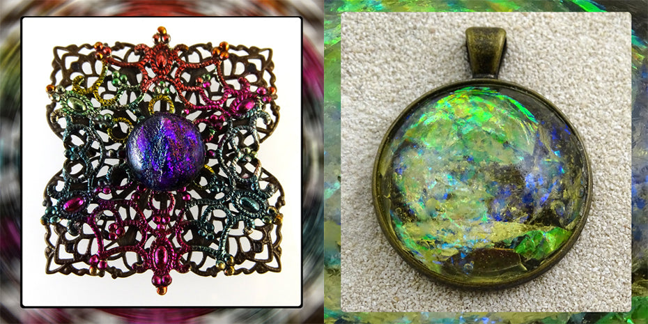 Hand-Painted, Antique Brass, Double Filigree Pendant With Dichroic Glass Center