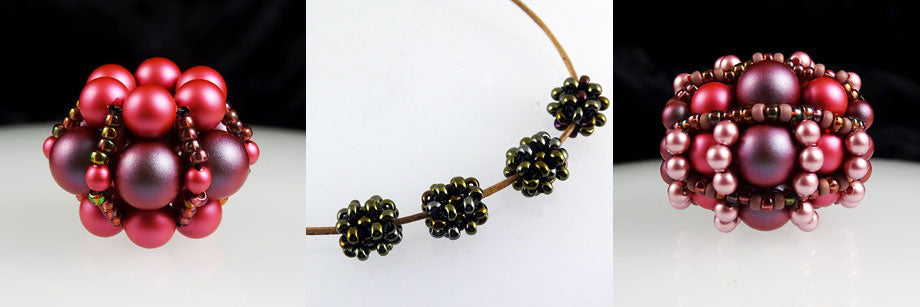 "Berry Beads": Hand-Woven Beaded Beads - Picasso Red