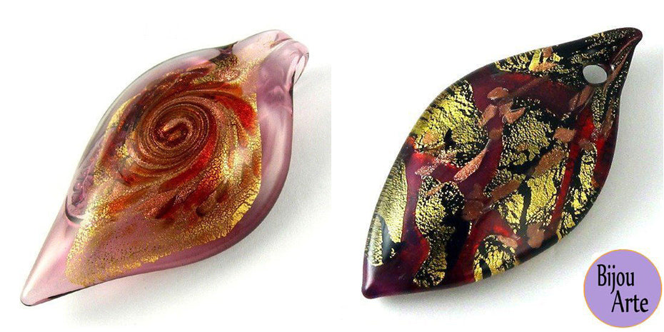 Gold Leaf encased in Murano glass. The back is marked "Vetro di Murano" to indicate that it was created using glass from the Venetian island of Murano. Length: 30 mm