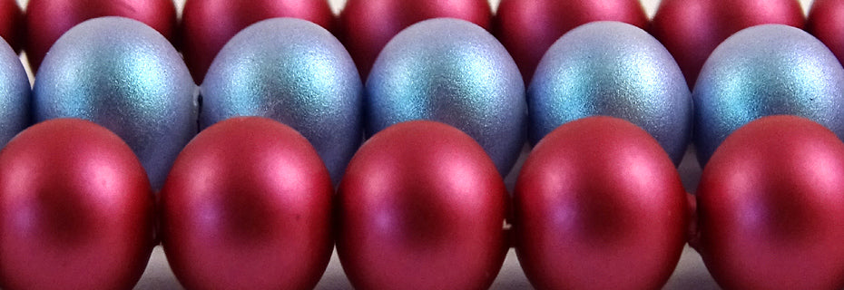 Once the properly sized crystal spheres are selected, each sphere is then expertly layered with several coats of mother of pearl coating, creating a varietal palette of luminous semi-matte pearlescent colors, as well as the more traditional ivory and white pearl tones.